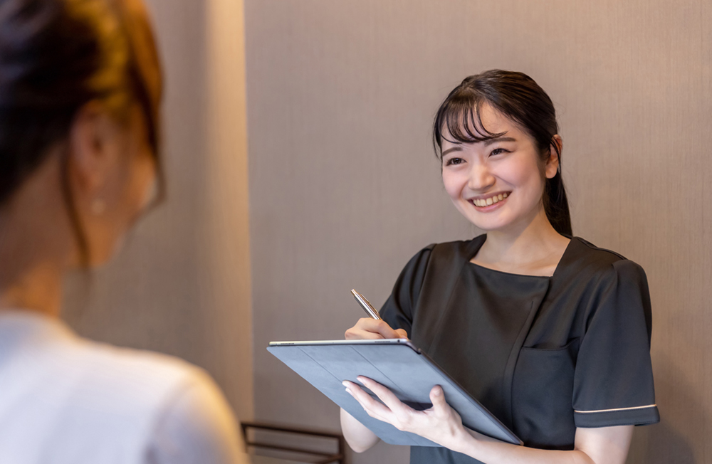 お客様のカウンセリング、予約受付、電話・メール対応、SNS配信、販促企画、医療行為以外のお客様対応全般